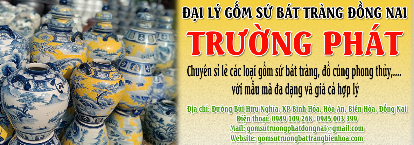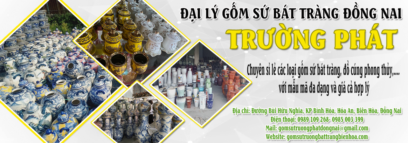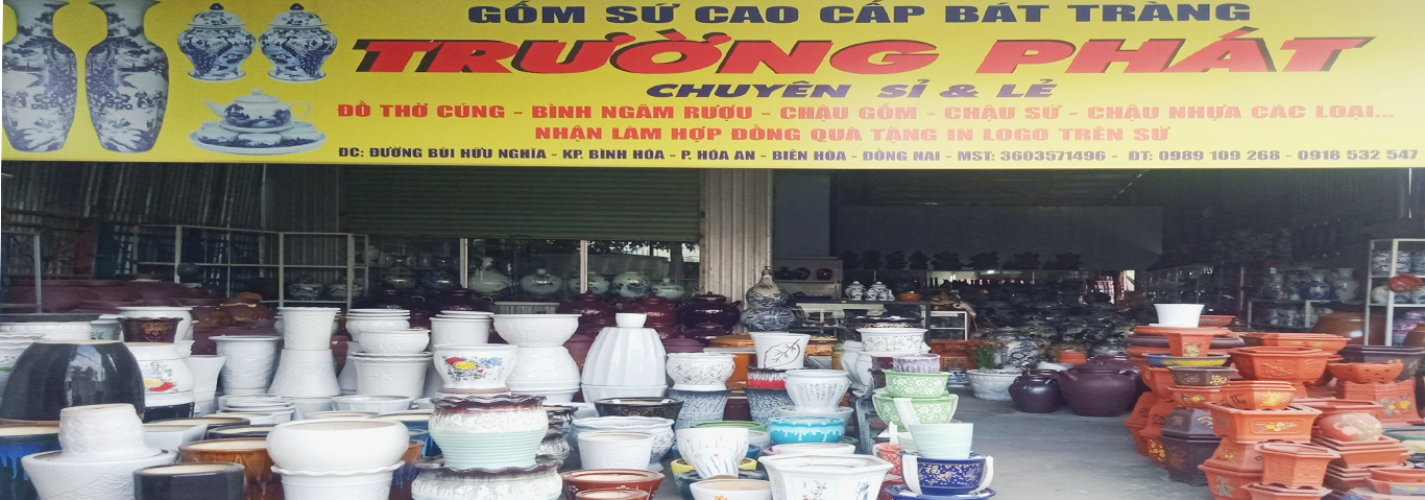 Gốm sứ bát tràng Trường Phát chúng tôi chuyên cung cấp các sản phẩm gốm sứ trang trí nội thất, đồ gốm gia dụng, quà tặng gốm sứ, đồ thờ cúng, chậu kiểng,... uy tín - chất lượng nhất tại Biên Hòa, Đồng Nai.Vì vậy, khi đến với gốm sứ bát tràng Trường Phát - nơi tụ họp của nhiều sản phẩm chất lượng nhất đến từ các lò gốm sứ khác nhau ở Bát Tràng.