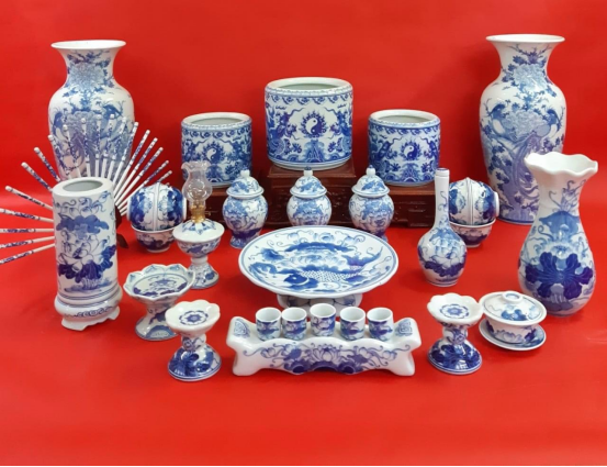 Các dòng sàn phẩm như: bình, lọ hoa, bát đĩa, ấm chén, đồ thờ cúng, đồ trang trí, nội thất